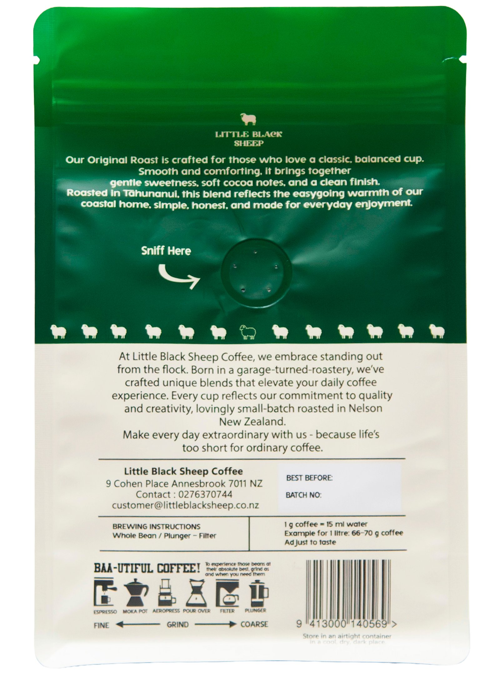 Small-batch roasted in Nelson for maximum freshness